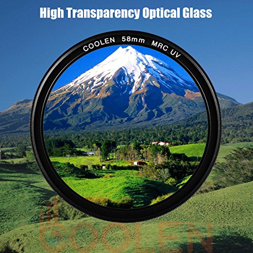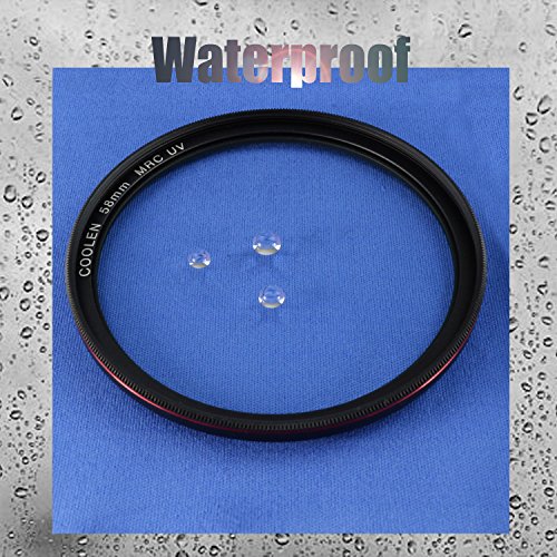 The Coolen 58mm UV Protector Filter is a general use, clear filter that helps to safeguard your lens from dust, scratches, moisture, and other elements. It also provides extra security against accidental drops, so you can leave it on a lens at all times. The frame was made from aviation grade aluminum with a matte black finish. The gold plating on the outer frame adds elegance. The lens was made from specially selected Schott optical glass. It helps absorb ultraviolet light and reduce the bluish cast of daylight to achieve sharper images and more natural colors. Causing no additional coloration or contrast, it can be paired with others. It comes with a handy little plastic box for storage. This filter is made from materials meeting the requirements of European Union's standards of environment protection-ROHS (Restrictions on Hazardous Substances). The super fine dull polishing and elaborate knurling prevent the frame from blanching due to repeated rotation. The ultra thin frame helps avoid vignetting on super wide angle lenses. The screw thread in the front of the frame allows easy attachment of the lens cap or other accessories. A professional UV filter that guarantees years of pleasure and satisfaction!