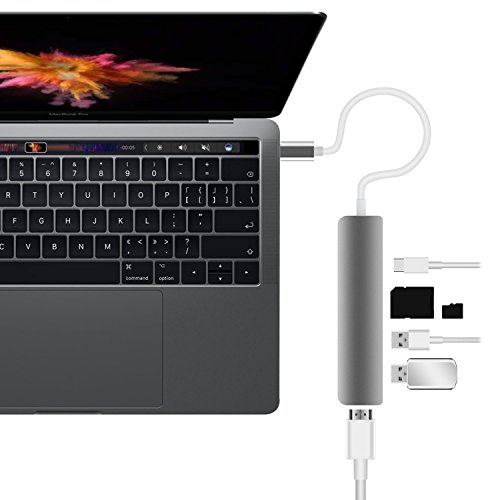 SpecificationProduct Type: USB Type-C HubCable material: TPE+PVCCase material: Aluminum + ABS+PCInterface: 1x USB C Connector; 2 x USB 3.0 ports; 1 x SD Card Slot; 1 x MicroSD card slot (TF Card); 1 x HDMI portDimensions:(L x W x H): 4.6 x 1.1 x 0.42inch / 116.5 x 28 x 10.9mmNet Weight: 46gWarm Tips:To power and charge a connected laptop, use a 30W USB charger or greater that supports Power Delivery.When the hub is not powered by a charger, connected USB devices should not exceed a combined input current of 900mA. When powered by a charger, the combined input current should not exceed 3000mA. Devices are usually rated as follows:Mouse: 100 mACamera: 300 mAKeyboard: 500 mAExternal Hard Drive: 900 mATo transfer data at superfast speeds, your computer, peripherals, cables and software must all support USB3.0.The SD card slot supports SD, SDHC card types up to 32GB, SDXC card types up to 2TB. sppeds up to 20MB/s.The TF card slot supports micro- SD( T- Plash) card types up to 128GB, at spped s up to 20MB/s.To transmit video signals via the Video port, use an Video cable (not include).