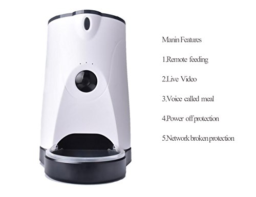 Features:Multi-functional Smart Pet FeederFree app for Android and iOS device user manages the application to feed pet automatically or manually, care about your pet Anytime and Anyplace. Keep An Eye on Your PetConnect with your pet while you are away with the supported dual-way audio chat/recording or with the included HD camera. Take photos and videos of them with just the touch of a button. User Friendly APP And Easy SetupSimple to program the feeding schedule for your pet. Detachable feeding tray for easy cleaning and made with proper size to prevent the mess. Perfect for owner who is on vacation or hard to maintain a regular feeding schedule.Specifications:Dimension: 32.5*35.6*23cmCapacity: 4.0 LitersNet weight: 2.5kgImage Sensor: 1.3 million pixelsMaterial: ABSDC Power: DC 5V/2A Standard Power SupplyFood Category: 5-15mmNote: Any problems about the product or service, please do not hesitate to contact us.We will solve your problem as soon as possible