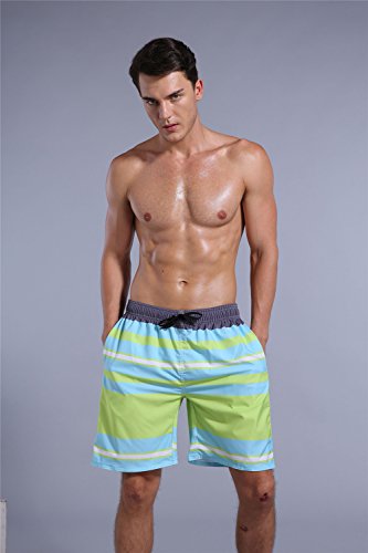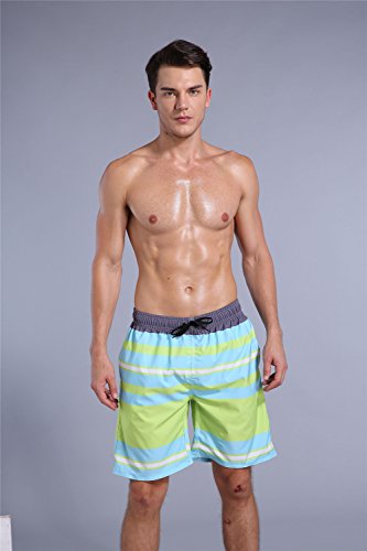 Color: Blue,Green SIZE: SIZE S: Waistline=30-32 inch; Inseam=8.0"; Outseam=20.1" SIZE M: waistline=34-36 inch; Inseam=8.0"; Outseam=20.1" SIZE L: waistline=38-40 inch; Inseam=8.3"; Outseam=20.9" SIZE XL: waistline=42-44 inch; Inseam=8.3"; Outseam=21.7" MATERIAL:4 way strech,easy to wash and Quick dry;soft and comfortable to wear;Color: Red Flamingo, white Flamingo,RoyalBlueDodger Blue,Ocean Blue,Turquoise,Spring Green these swimtrunk Specific information as follow: SIZE: SIZE S: Waistline:30"-32"; Outseam:16.7"; Inseam:6.1"SIZE M: Waistline:34"-36"; Outseam:16.9"; Inseam:6.1"SIZE L: Waistline:38"-40"; Outseam:17.5"; Inseam:6.3"SIZE XL:Waistline:42"-44"; Outseam:17.7"; Inseam:6.3"MATERIAL:peach skin, FEATURES:Brief Mesh lining; with 2 side pockets and 1 back zipper pockets; Outside drawstring around the whole waist;Package Included in:1 Men Swim TrunkOur Model is 6.1' tall, waistline is 32" and wearing a size 32 " size S fitted him.OCCASION:Suitable for any circumstance,Such as:walking,running,gym,swimming,in the beach or at home,etc;
