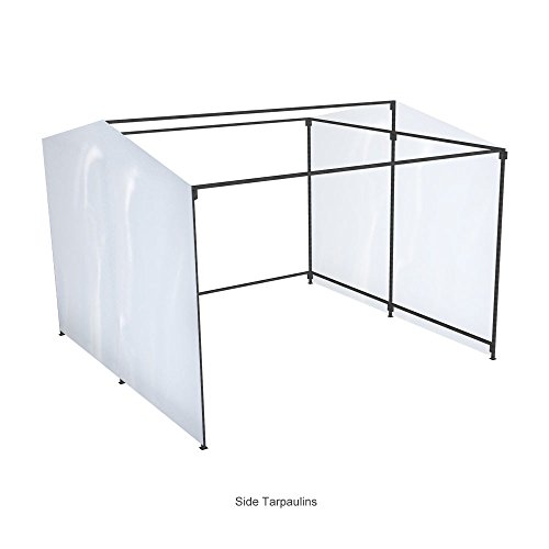 General Purpose Walk-In Market Stalls are commonly used as a shelter within which traders can set up their own display arrangements such as greetings card stands or tables. This Market Stall does not include counters. You may also be interested in our range of tables or even our Walk-in Market Stall with Counters. This version is supplied with a 2ft front overhang, see our other listings if you wish to purchase the version that is not supplied with the overhang. This stall is available in the following sizes: • 8ft x 8ft (approx. 2.4 x 2.4m), longest bar: 7ft • 10ft x 10ft (approx. 3.0 x 3.0m), longest bar: 7ft • 12ft x 10ft (approx. 3.6 x 3.0m), longest bar: 7ft • 12ft x 12ft (approx. 3.6 x 3.6m), longest bar: 7ft • 14ft x 12ft (approx. 4.2 x 3.6m), longest bar: 7ft 4in • 14ft x 14ft (approx. 4.2 x 4.2m), longest bar: 7ft 4in Please ensure that your vehicle can transport this Market Stall's longest bar length as shown above. Prices vary depending upon size. The Market Stall Kit price includes the following items: • Black Hammer Effect Painted Steel Frame • Roof canopy (available in white or striped colours) • 20 x spring clamps Steel Frame Market Stall frames are manufactured from 25mm x 25mm (1 inch x 1 inch) steel box section tube and finished in a black hammerite paint. Frame slots together using a pin and socket system. Roof Canopy Tarpaulin The canopies supplied with our Market Stall kits are a polyethylene type tarpaulin. As they are a general purpose tarpaulin they may not necessarily be an exact fit and may require some folding or overlapping. Spring Clamps This Market Stall kit is supplied with a set of 50mm Spring Clamps to secure the tarpaulin to Market Stall frame. Counter Boards This market stall is not supplied with counter boards.