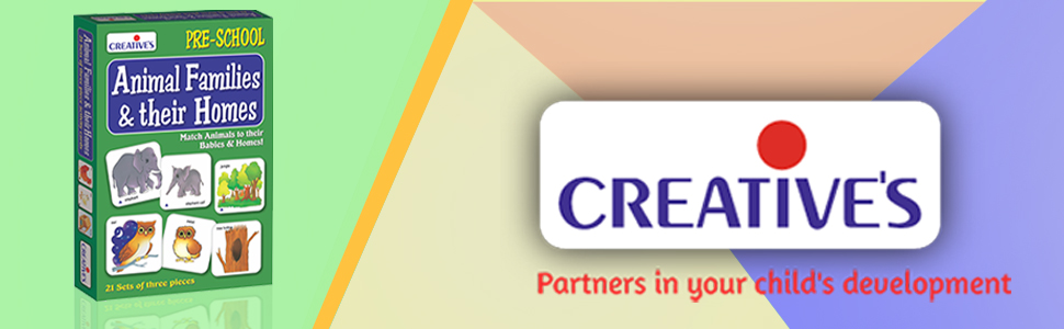 Creative's Animal Families And Their Homes Card Game is a 63-piece, multicolor educational set from India designed for 1-2 players aged 4 and up. It promotes vocabulary, logical thinking, and environmental awareness by matching animals to their homes across 21 sets, all in durable cardboard cards requiring no assembly or batteries.