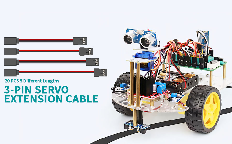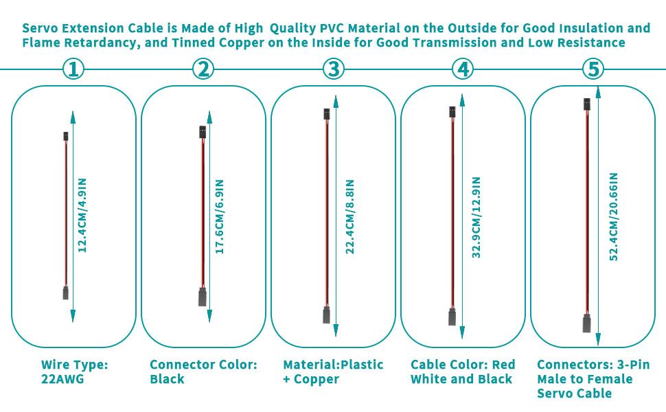 This 20-piece set of 3-pin servo extension cables offers five different lengths ranging from 4.88 to 20.67 inches, featuring female-to-male connectors with angled pins for error-free installation. Compatible with major RC brands like Futaba and JR, these cables provide reliable, versatile connections for planes, helicopters, and cars, making them essential for any remote control enthusiast or professional.