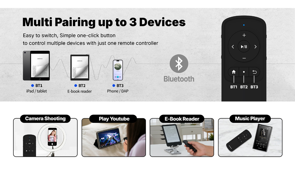 MITER Remote Control Page Turner RF & Bluetooth Clicker for Kindle Paperwhite Oasis Scribe Kobo Boox e-Reader TikTok YouTube Camera iPad iPhone Galaxy Phone Tab (Black)