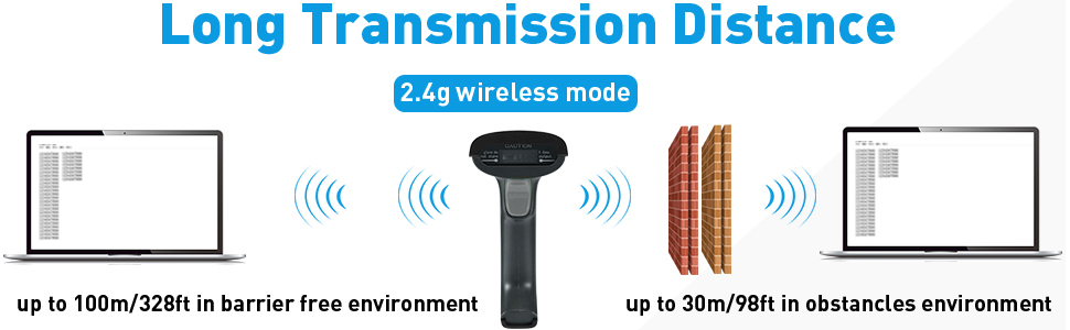JRHC2D Barcode Scanner Wireless Handheld Bar Code Scanner Versatile 2-in-1 (2.4 GHz Wireless + USB 2.0 Wired) QR Code Scanner 2D Automatic Bar Code Reader Scanner