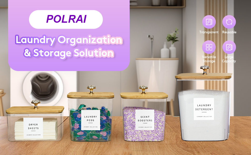 - MAXIMIZE LAUNDRY ZEN - Streamline your space with 1 large and 2 medium jars plus a dryer sheet holder—everything in clear view.