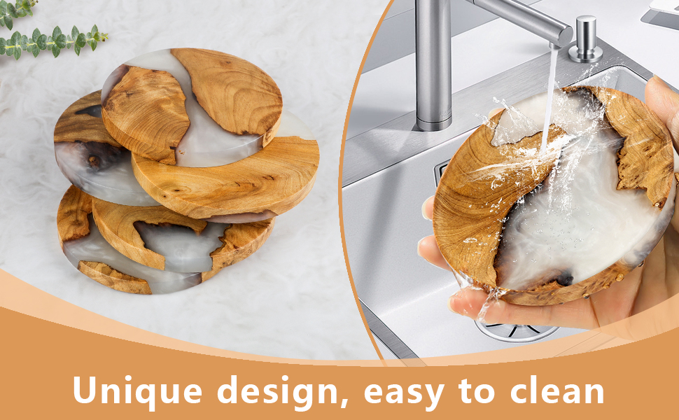 Drink Coaster Set Wooden Absorbent Coasters Epoxy Resin Coaster Coffee | Desertcart Morocco