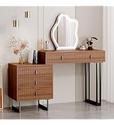 This white makeup vanity desk features 8 drawers and storage shelves, a built-in power strip with USB and outlets, and a dimmable 3-color LED mirror. Crafted from engineered wood with metal handles and smooth ball-bearing drawer slides, it offers customizable sizing and easy assembly, making it the perfect blend of functionality and chic design for any modern bedroom.