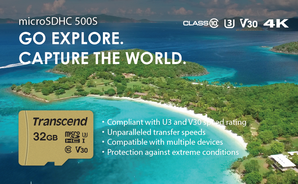 The Transcend 8GB microSDHC 500S is a high-performance, durable memory card designed for action cameras and drones. With UHS-I, Class 10, U3, and V30 ratings, it supports lag-free 4K and Full HD video recording. Featuring up to 95MB/s read and 55MB/s write speeds, water and dust resistance, and broad device compatibility, it ensures reliable, fast storage for professionals on the move.
